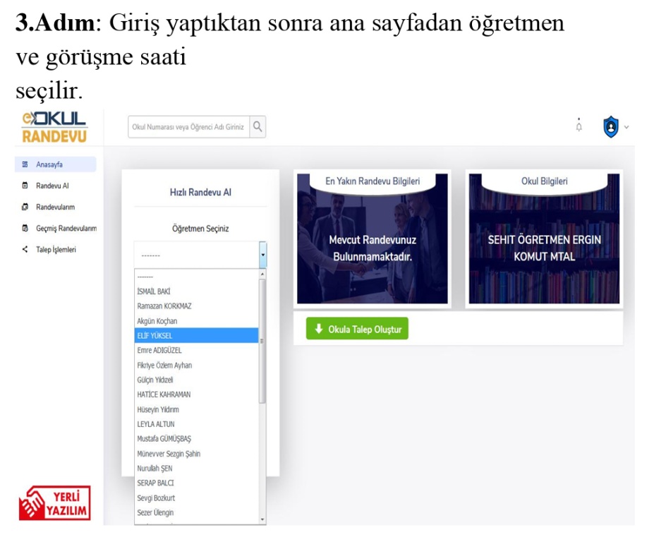"Okul randevu sistemi" ile veliler, okulda eğitim alan çocuklarının durumunu görüşmek istedikleri öğretmenle görüşme zamanını ayarlayabiliyor.